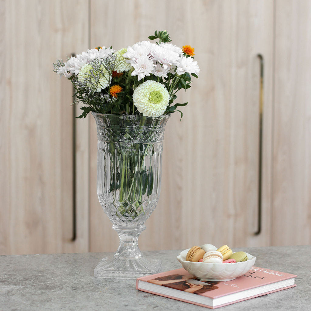 Our gorgeous crystal design glass vase makes the perfect centre piece.
